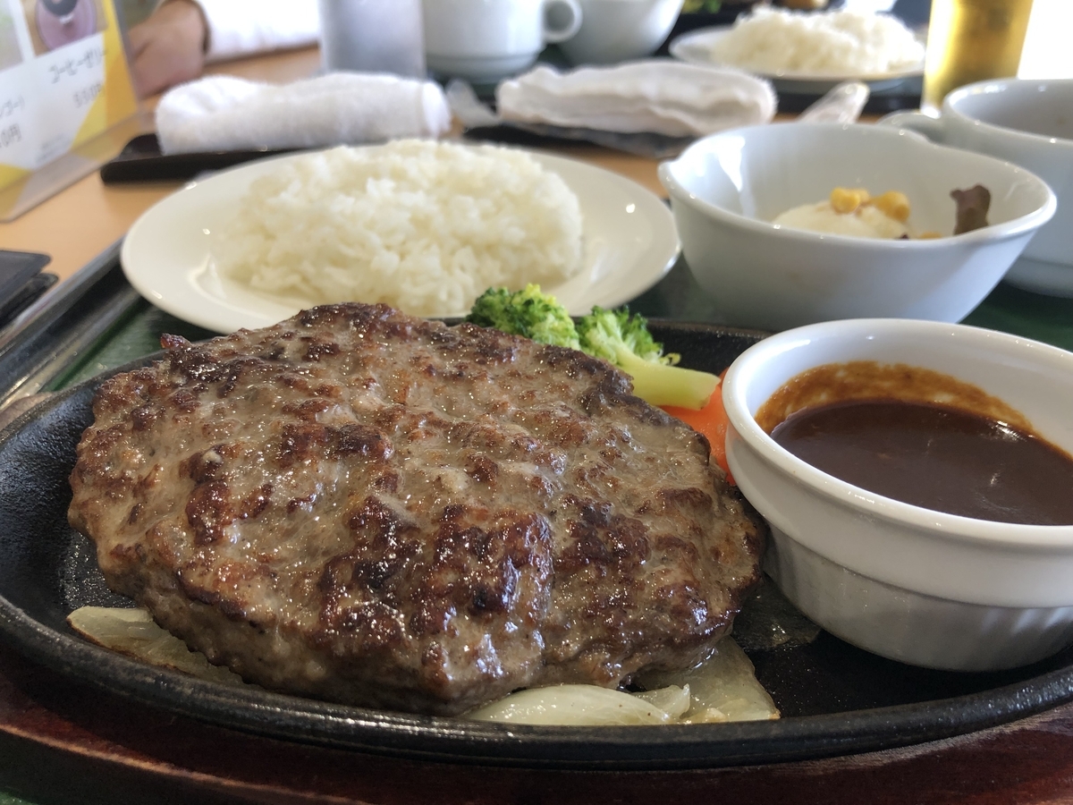 このゴルフ場のこの粗びきハンバーグが大好きで、、、ついでにコーヒーゼリーも、、、